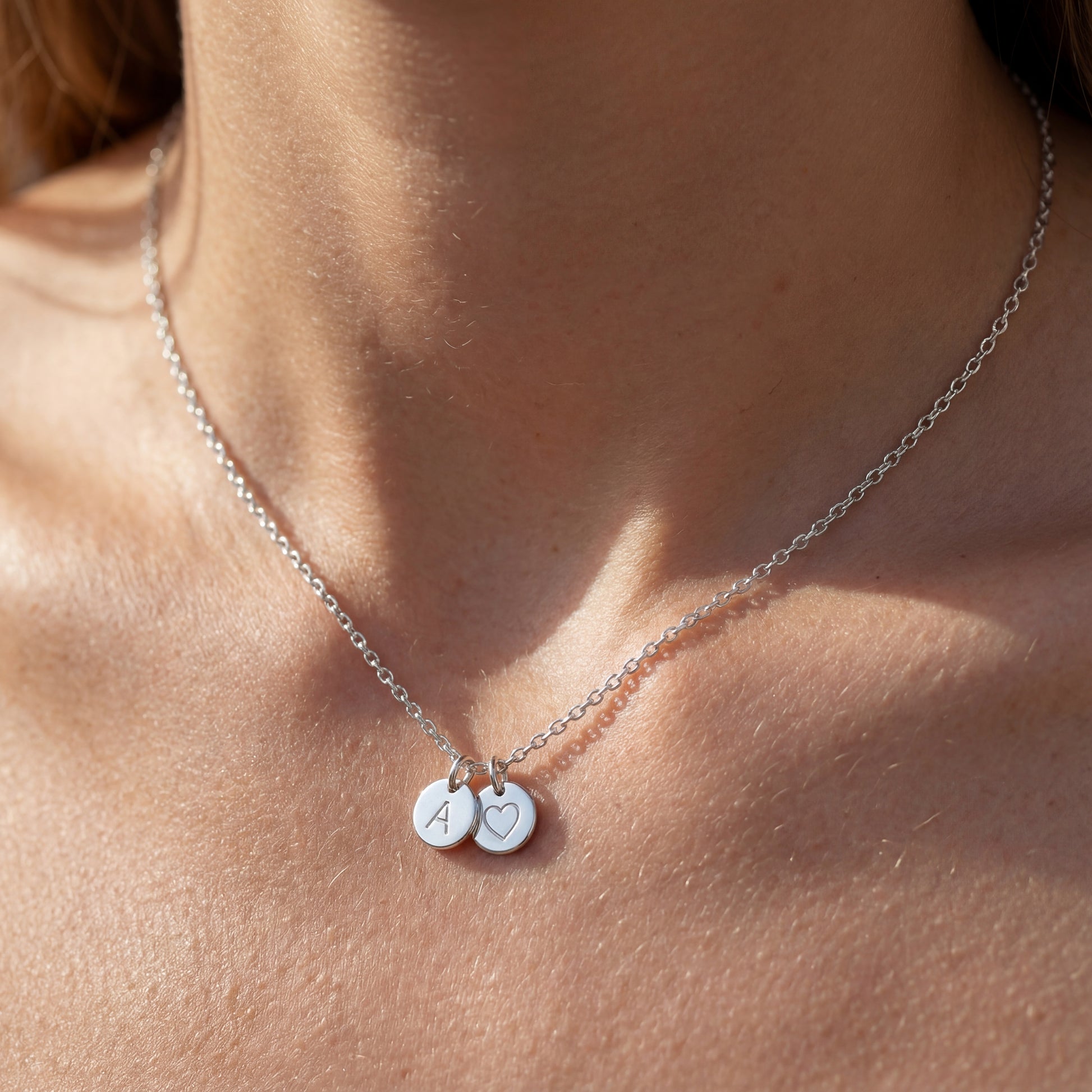 A refined necklace featuring up to three circular disc pendants, each ready to be personalized with your chosen initial. The minimalist design creates an elegant statement.