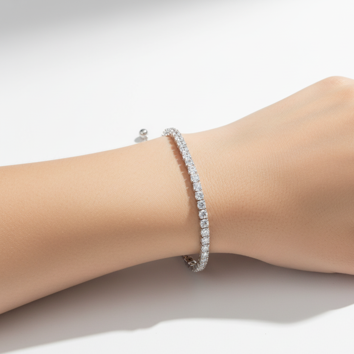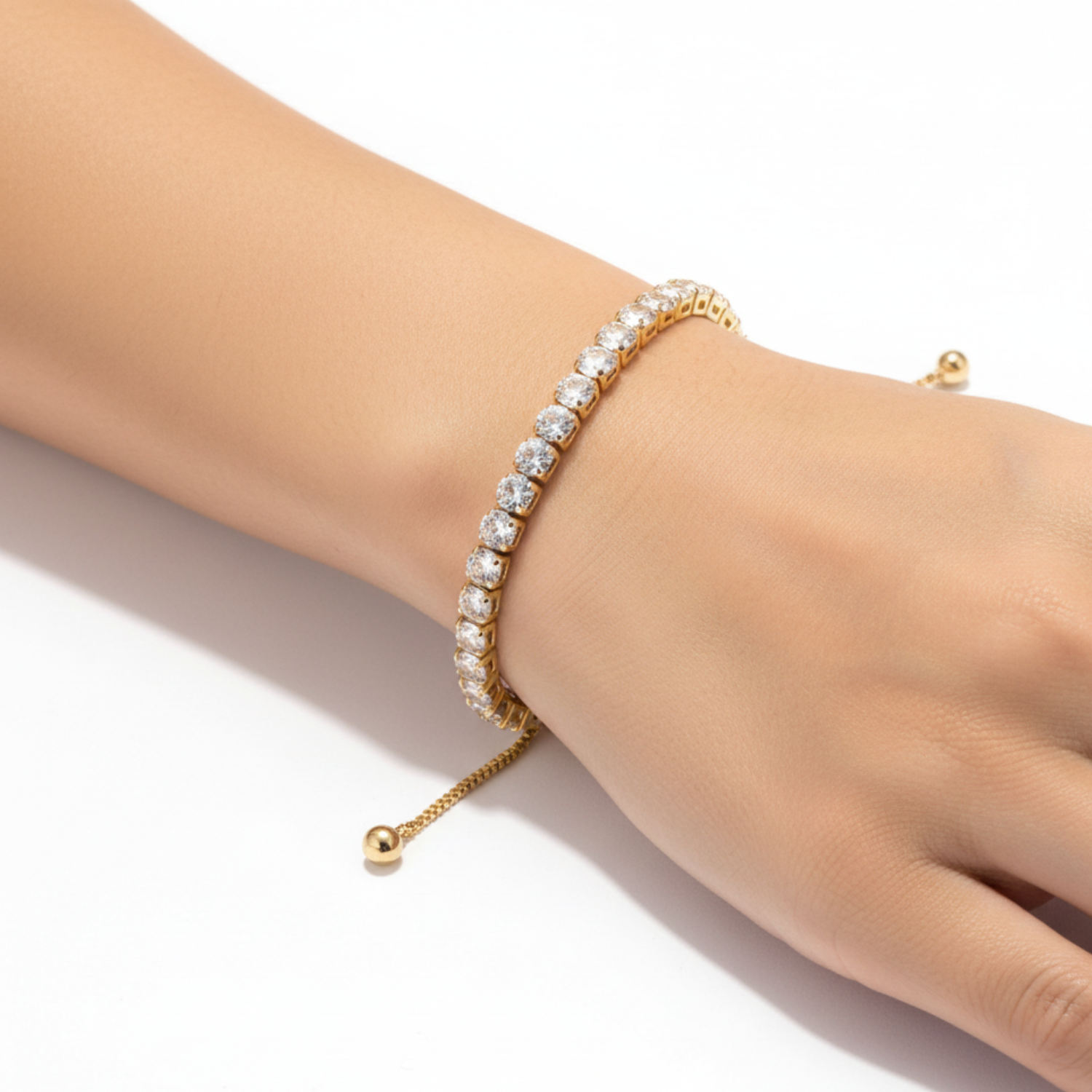 The "Diamond" bracelets embody a clean, luminous style. Their delicate design, highlighted by a subtle sparkle, makes them the perfect accessories to enhance your outfits, whether for everyday wear or special occasions.
