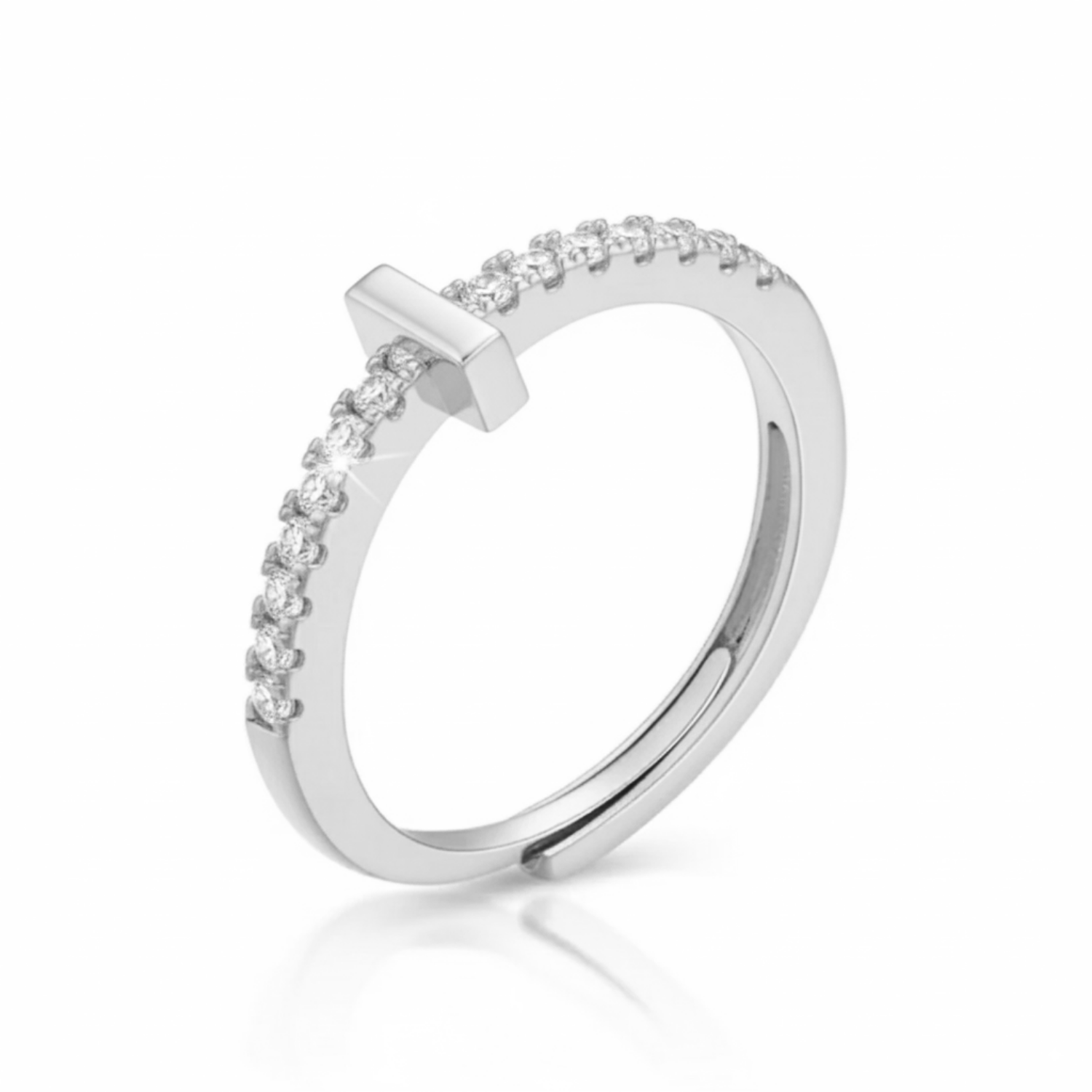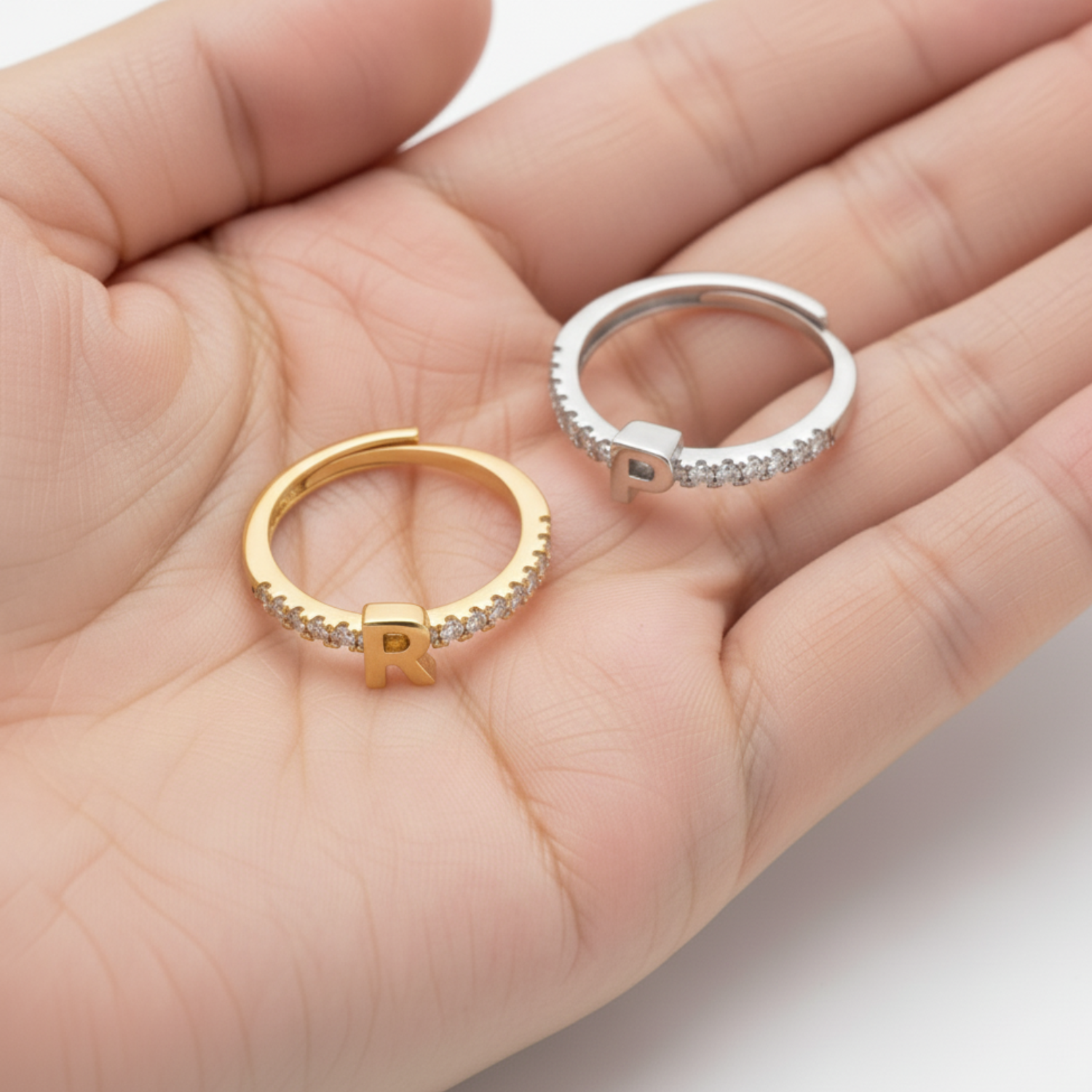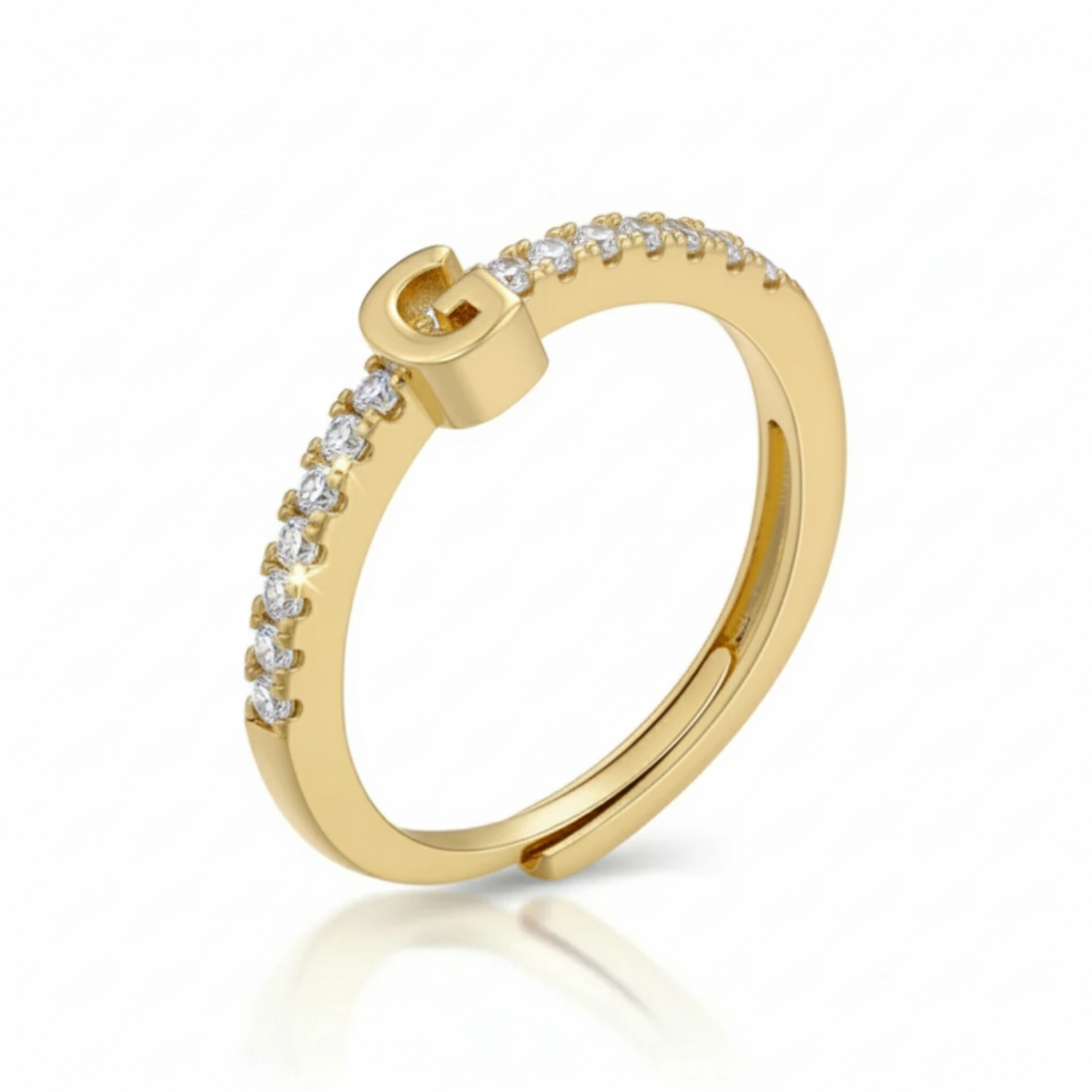 Assert your style with this stunning ring adorned with sparkling rhinestones and a delicate initial. Its fine and elegant design catches the light with every movement, adding a subtle touch of brilliance to your hand. Whether you choose your own letter or that of a loved one, this ring becomes a personal and precious symbol.