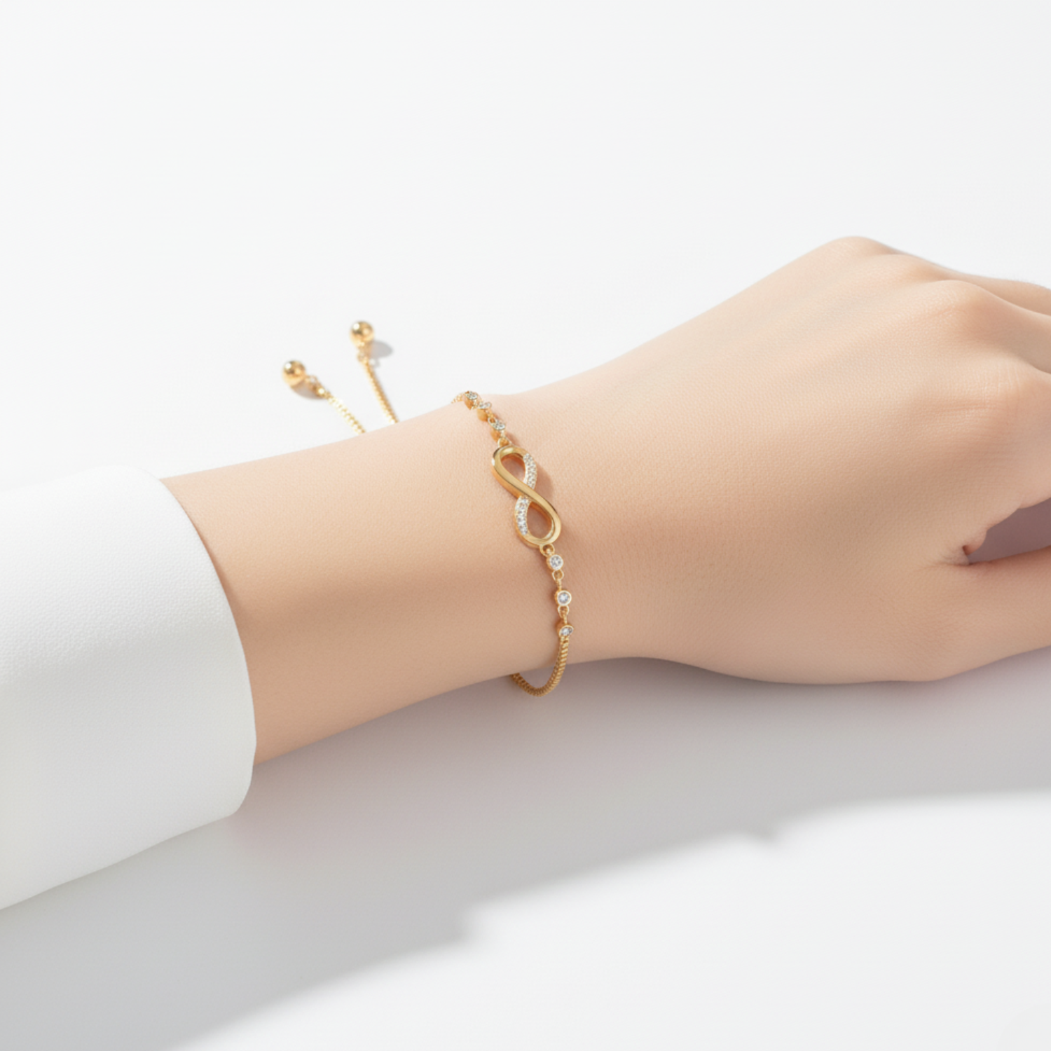 The "Infinity" bracelet is an invitation to celebrate everlasting bonds. Its iconic infinity loop design symbolizes love, friendship, or any lasting commitment you wish to carry with you.